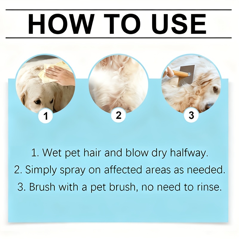 Shop Now10-In-1 Instant Smoothing No-Rinse Pet Spray – Anti-Frizz No-Rinse Spray with Plant Essential Oils, Aloe Vera, Suitable for Cats And Dogs – Safe And Quick Smoothing, Creates Soft And Shiny Coat