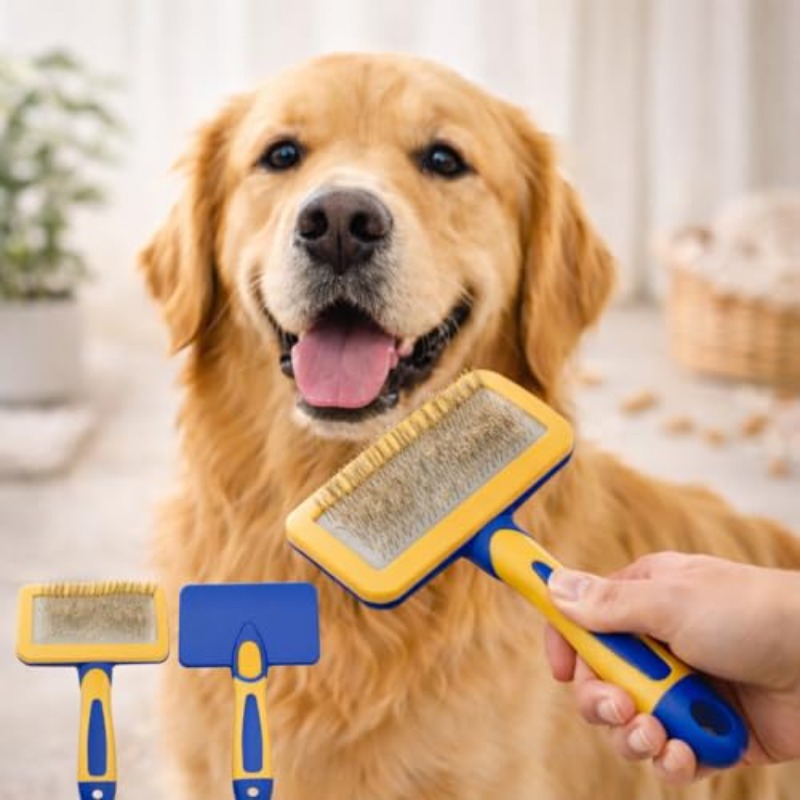 . Gentle enough for puppies, kittens & small breeds. 𝗟𝗘𝗦𝗦 𝗦𝗛𝗘𝗗𝗗𝗜𝗡𝗚, 𝗛𝗘𝗔𝗟𝗧𝗛𝗜𝗘𝗥 𝗖𝗢𝗔𝗧 – Silicone glove massages skin & removes loose fur. Slicker brush distributes natural oils, detangles knots & leaves coats shiny. Reduces fur around your home. Works on short, long & double-coated breeds.
