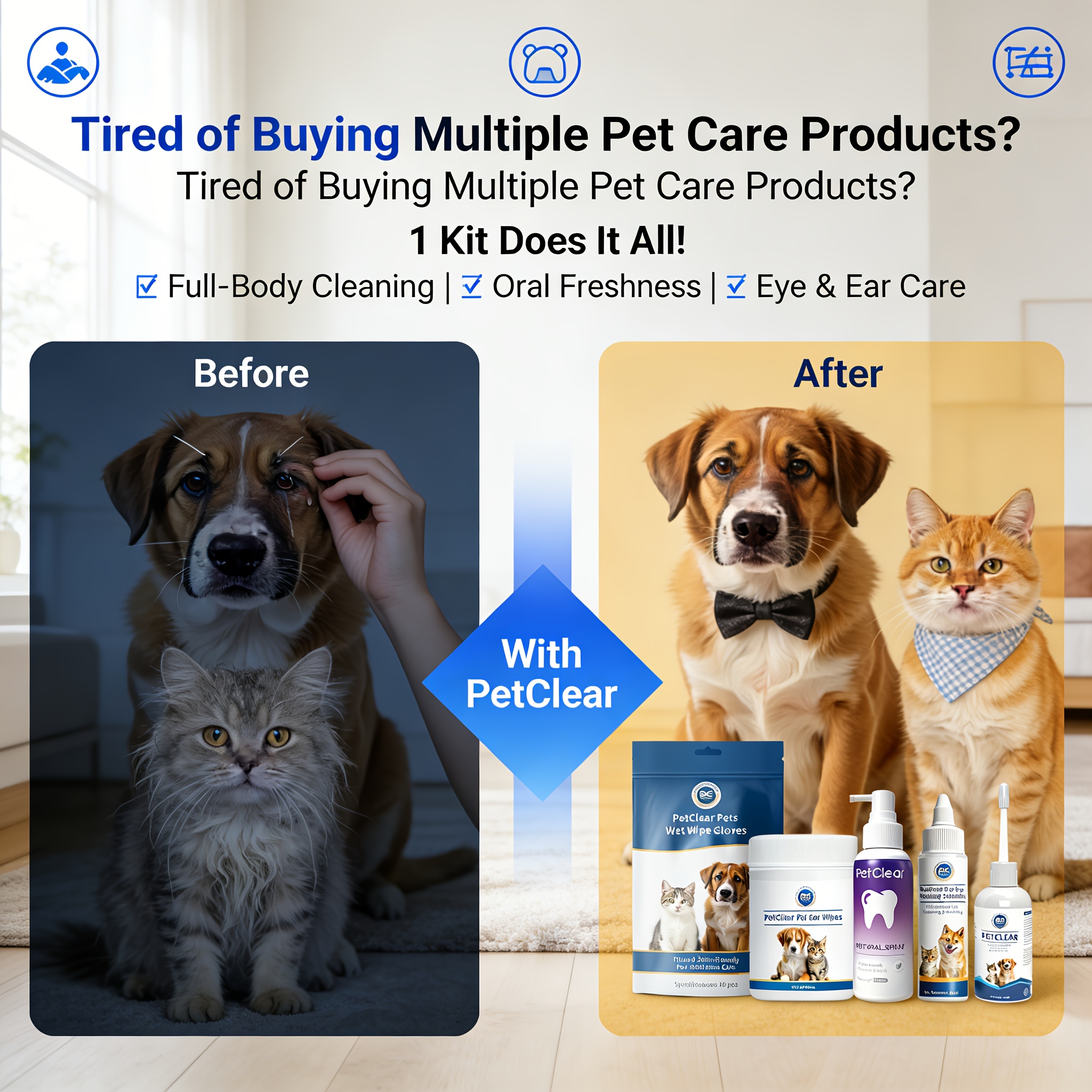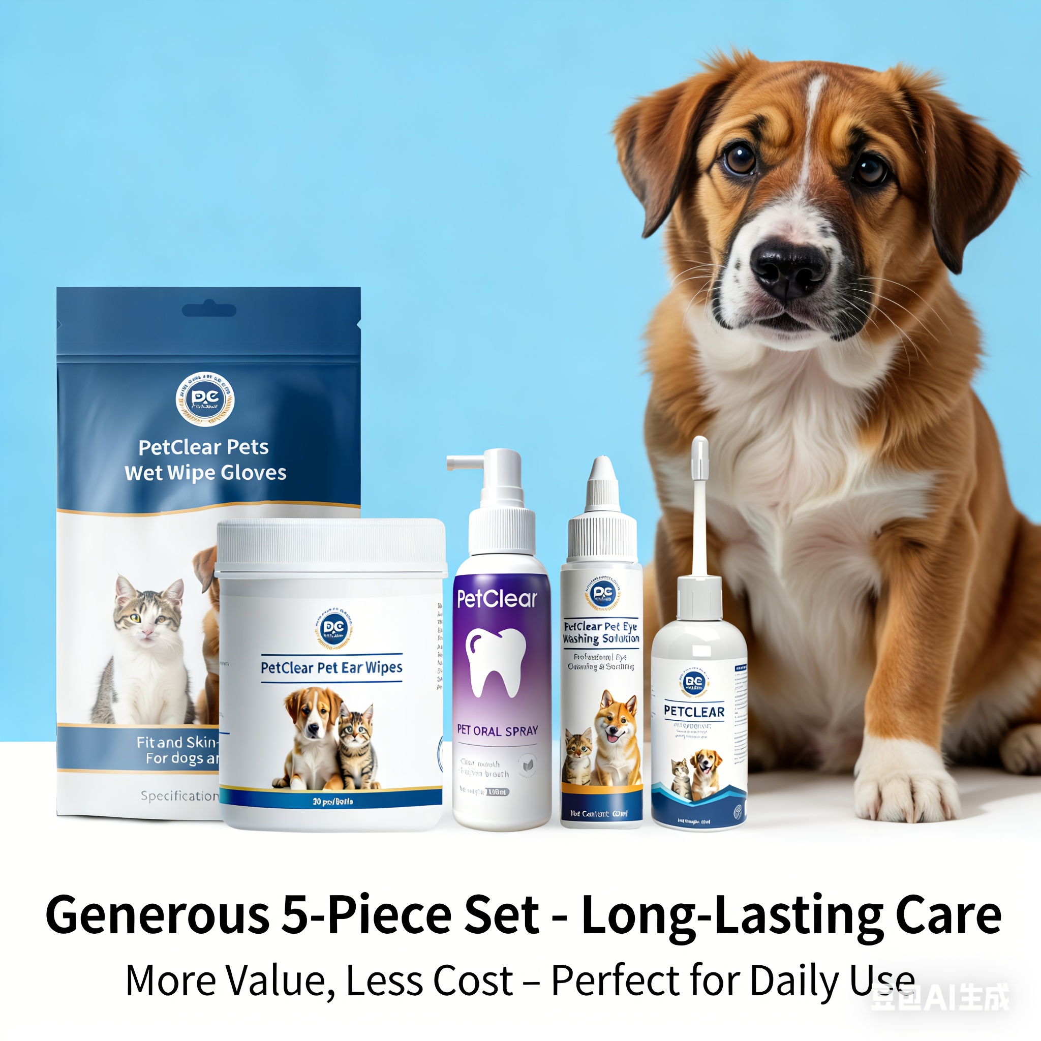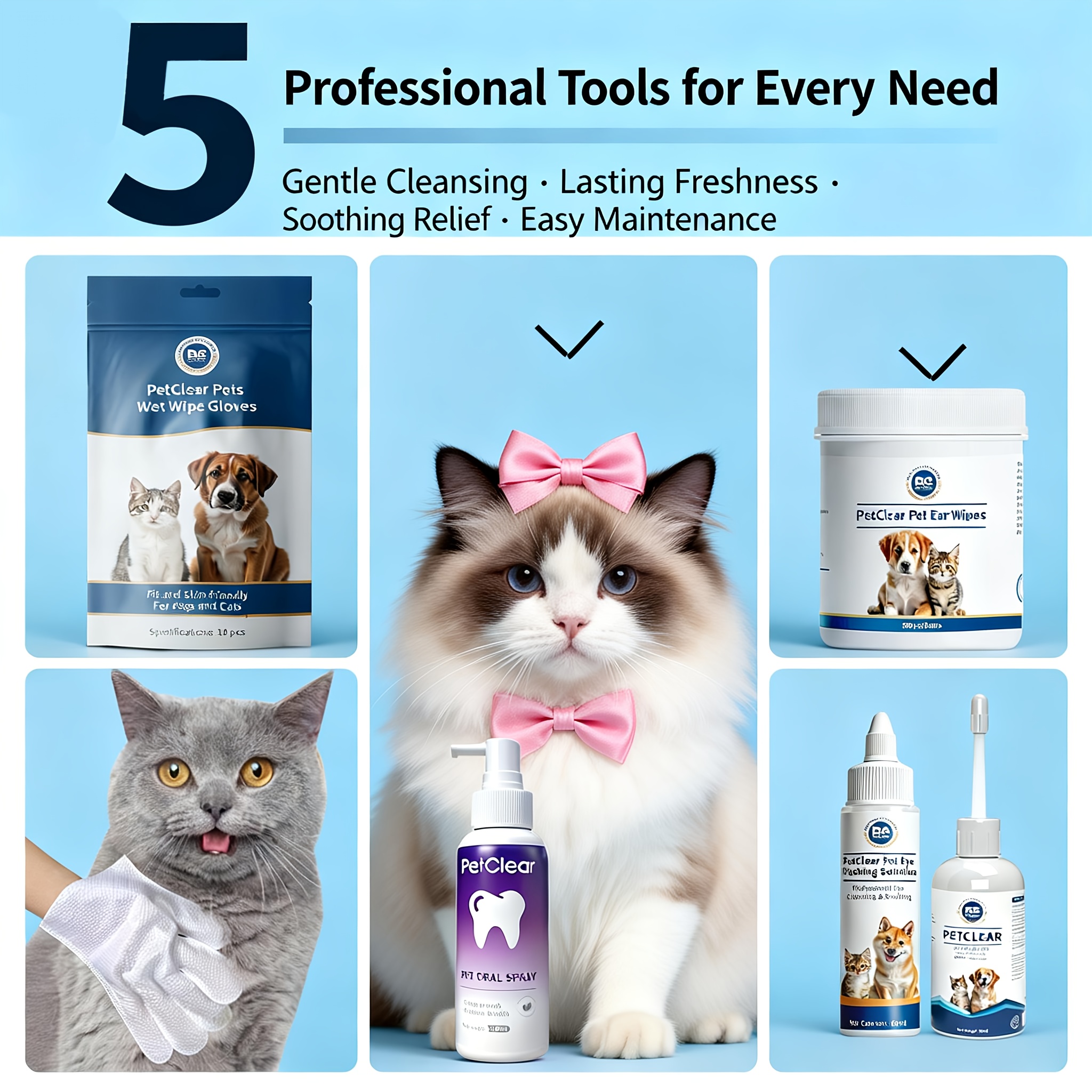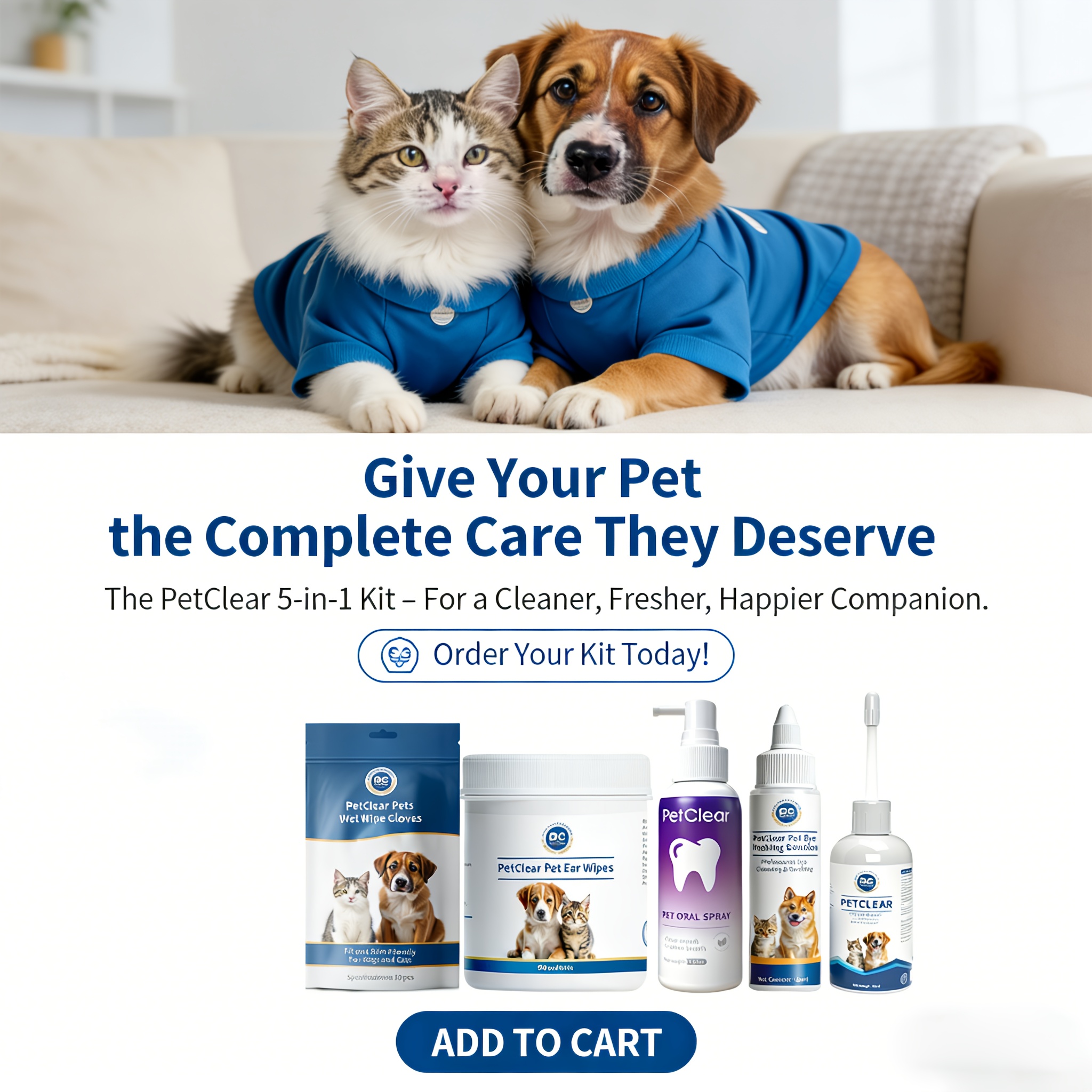 Shop NowPet Ear, Eye, and Oral Care Kit: Includes 1 Bottle of Ear Drops, Eye Wash Solution, Oral Spray, Ear Wipes, and Wet Wipe Gloves